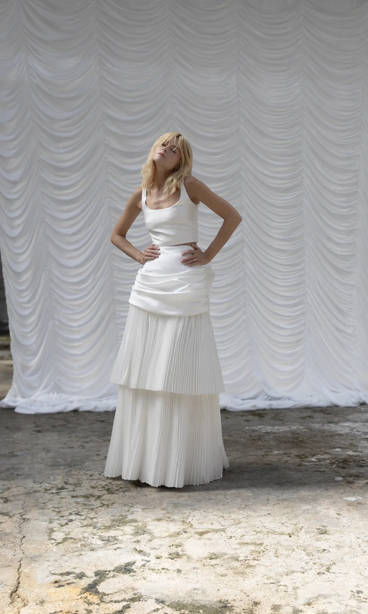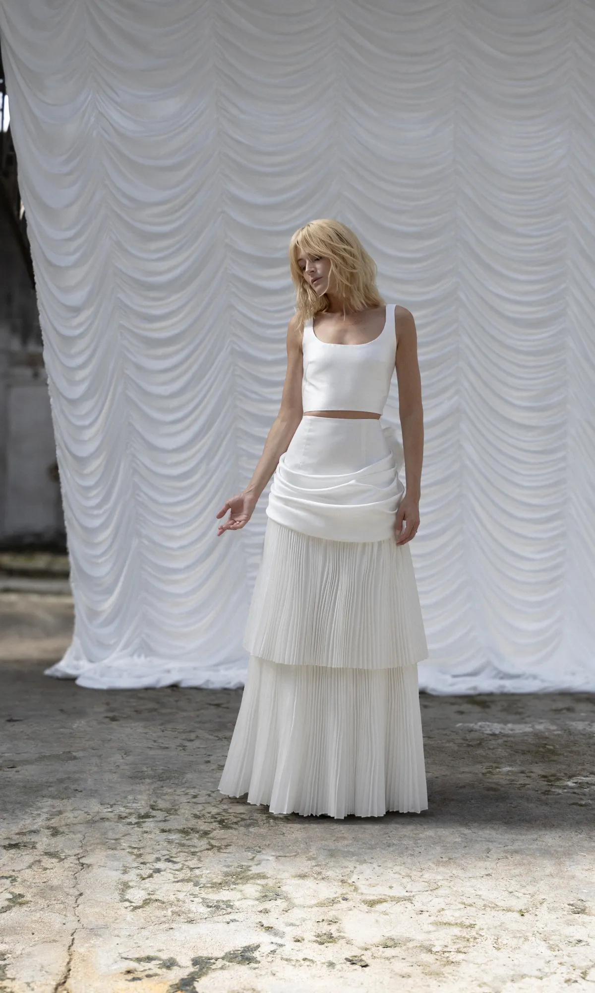 Classicism and modernity are literally brought together in this separable wedding dress. My creation is a true tribute to the courtesans of the 19th century. They had so much style. Real fashionistas!